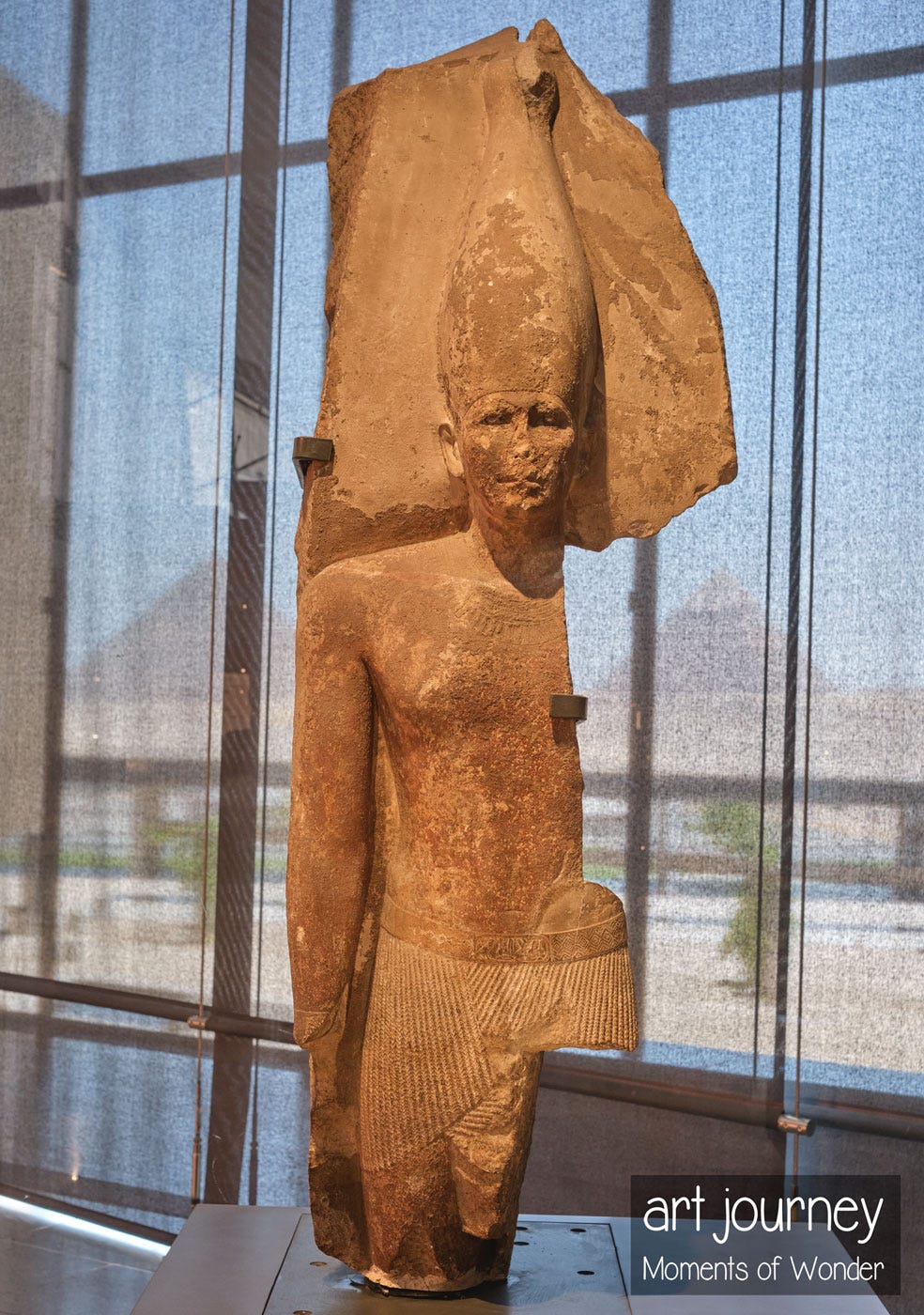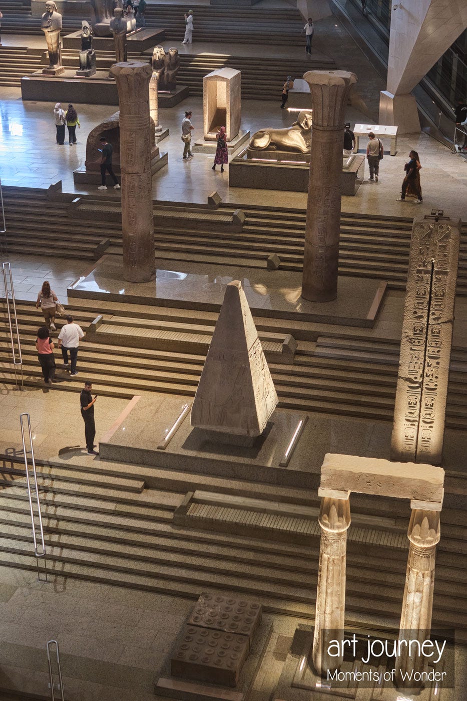 Past articles have illustrated that museums are time-travel machines. This story will be an authentic travel experience, dear reader, assuming you’ve long dreamed of visiting Egypt but have yet to do so. We begin our journey from within the Grand Egyptian Museum, marveling at the view outside.
