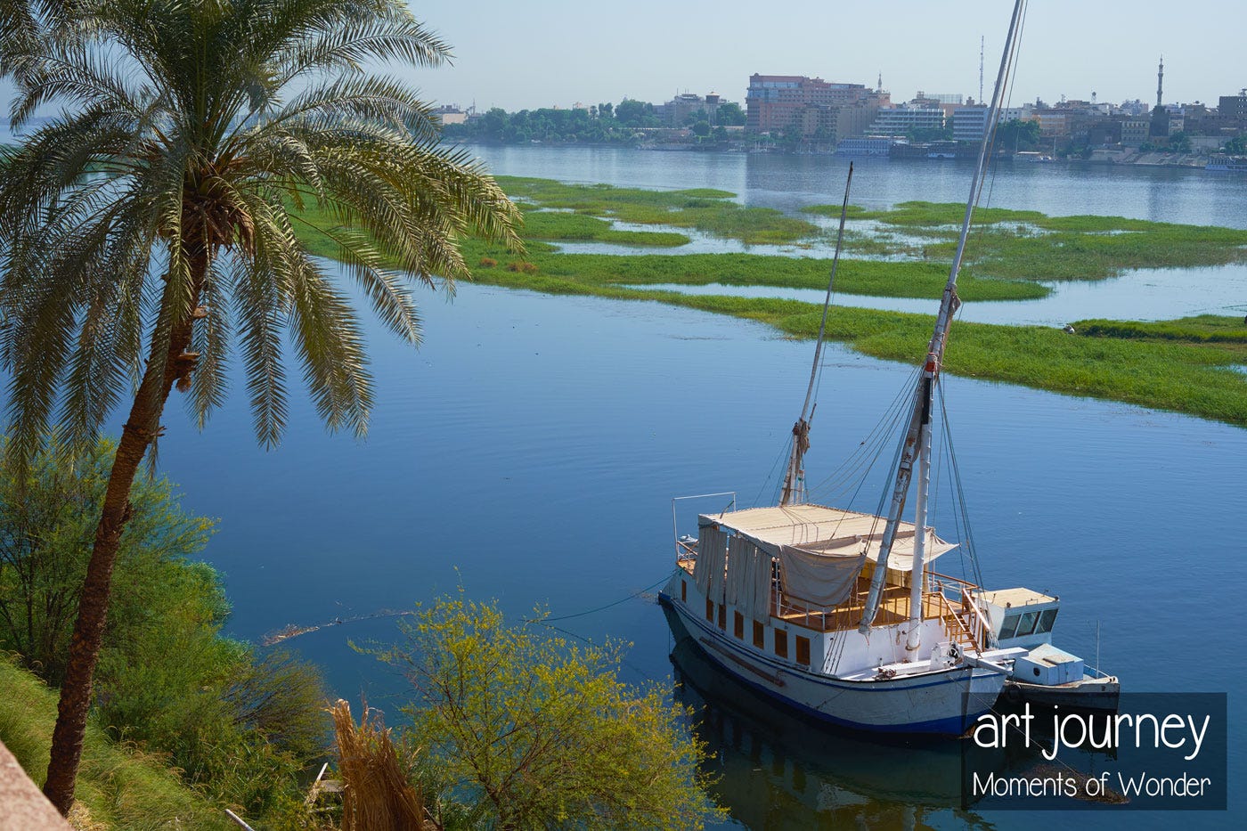 The romantic cruises of the late 1800s took 50 days to sail from Cairo to Aswan, traveling aboard a dahabiya, a beautiful sailing boat like the one above. Steamboats did the same cruise in 19 days.